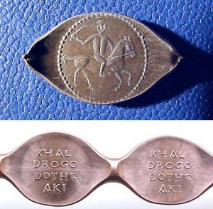 این سکه ی کوچک مسی متعلق به دنیای شرقی داستانهای نغمه یخ و آتش است. جایی که تحت عنوان Vaes Dotherak شناخته میشود که در آن مردمان اسب سوار داترکی زندگی میکنند.