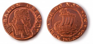 این سکه ها به شیوه ای بسیار بدوی که یادآور دوران William I در قرون وسطی میباشد، ضرب میشوند. در قسمت جلویی سکه تصویری از یک پادشاه تاج بر سر که گرز جنگی به همراه دارد حک شده است.
