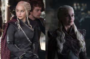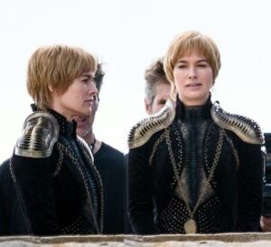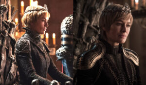 او از وقتی که روی تخت آهنین نشسته، ظاهری زرهگونه داشته مخصوصا روی شانههایش. برخلاف سانسا، ما این لباس جدید رو در تن سرسی در عکسهای رسمی فصل هشت دیدیم. به تفاوت یکی از لباسهایش در فصل هفتم (چپ) و لباس جدیدش (راست) دقت کنید: