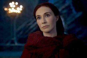 آویز، گردنبد و سینهبند همگی عالی هستند… دقیقاً منطبق بر استاندارد بالای دراماتیکی که سرسی برای خودش تعیین میکند! این خیلی جالبه که سرسی تاج روی سر نگذاشت! نه؟ و در این عکس به نظر میرسه که قرمز و مشکی پوشیده، رنگهای تارگرینها! من که تعجب نمیکنم اگر سرسی صرفا برای تاکید بر اینکه اوست روی تخت نشسته نه دنریس این رنگها رو پوشیدهباشد.