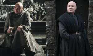 لباس واریس هم در عکسهایی که از فصل هشتم پخش شد با لباسش در فصل ۷ متفاوت است، بیاید اون هارو باهم مقایسه کنیم: اما در پوستر لباسش شبیه همانی است که در فصل ۷ داشت با این تفاوت که این یکی مشکی است. ظاهراً او یک قفسه از یک نوع لباس با رنگهای متفاوت دارد که همهجا آنرا باخود میبرد!!