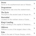 در این پست یکی از برنامه های نغمه ای مخصوص سیستم iOS را برای شما عزیزان آماده کردیم. این نرم افزار دانشنامه ی مختصری از شخصیت ها، مکان ها، مذاهب و خاندان های وستروس را در اختیار کاربر می گذارد و کاربران می توانند به تفکیک کتاب هایی که خوانده اند از اطلاعاتی که ذکر شد، استفاده کنند. البته این نرم افزار با نرم افزاری که در چند پست قبل معرفی شده بود تفاوت دارد، در تلاش هستیم تا سایر برنامه ها را در قالب سیستم عامل های دیگر نظیر آندروید و …. برای شما دوستان آماده کنیم.