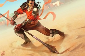 در کتاب سوم اُبرین، جنگجوی بزرگی با ۴۰ سال سن و چشمان سیاه و موهای تیره با رگه های نقره های توصیف شده است.