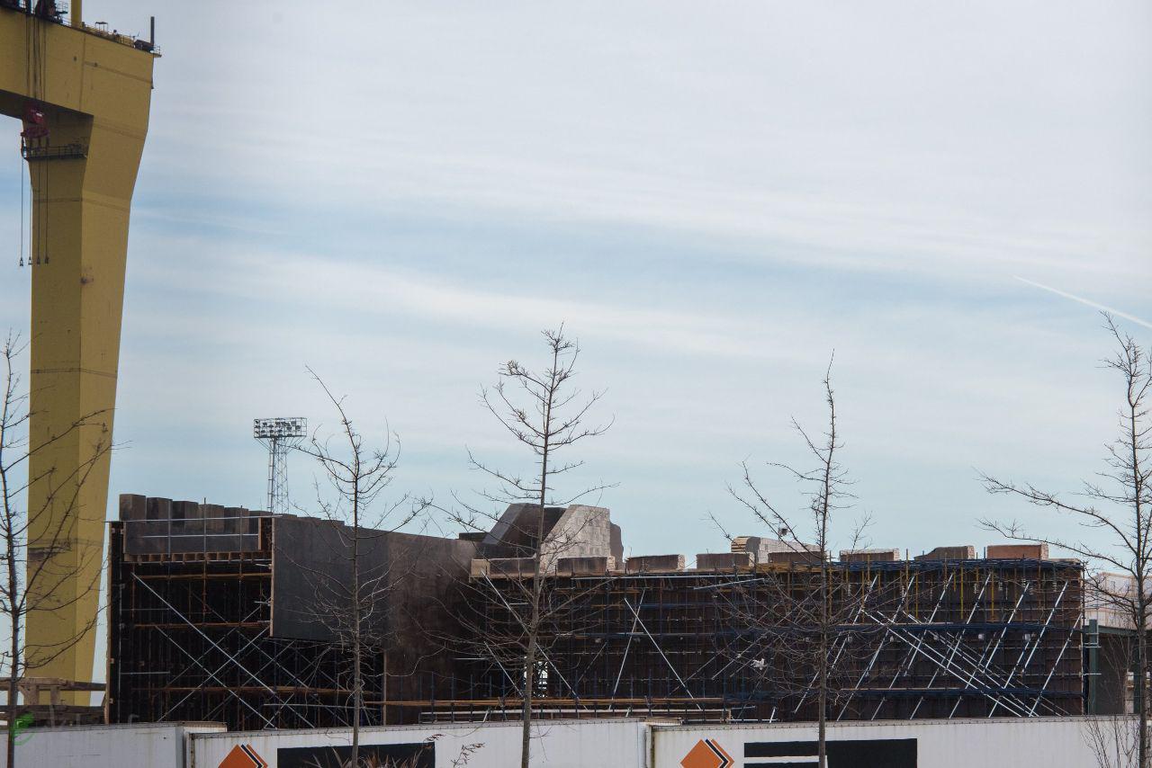 عوامل تولید سریال بازی تاج و تخت در حال حاضر به سختی روی سازه های عظیم مقر پادشاهی در استودیوی تایتانیکِ بلفاست، واقع در ایرلند شمالی مشغول کار هستند و خوش به حال ما! چرا که وقتی سازه بسیار بزرگی میسازی، نمیتوانی محتاط باشی و خبری درز نکند. با تشکر از برخی طرفداران، تصاویری جدید از این سازه که در حال کار روی آن هستند، گرفته شده است.
