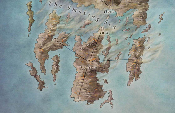 مشابه همین اتفاقات در وستروس پیش می آید: پس از این که تارگرین ها هفت پادشاهی را در اختیار می گیرند، در طول زمان رو به زوال می روند و اژدهایان ایشان از بین رفته و در انتها با قیام شخصی به نام رابرت، قدرت، حکومت و اقتدارشان از بین می رود. سال ها بعد، دختری به نام دنریس تارگرین که از وارث خون والریا و تارگرین ها است، در تلاش است تا به وستروس بازگردد و قلمرو از دست رفته خاندان خویش را بازیابد.