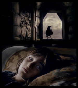 زمانی که برن در اغما به سر می برد، دایرولفش او را از دست یک آدمکش نجات می دهد و گلوی آن فرد را پاره می کند. در هنگام خوابش برن رویاهای زیادی می بیند از جمله یک کلاغ سه چشم که به برن می گوید که می توان پرواز کردن را به او بیاموزد. برن بیدار می شود و سریعاً نام دایرولفش را سامر می نهد.[۶] برن بعد از افتادنش فلج شده و نمی تواند راه برود ولی کلاغ سه چشم به او می گوید که او گرگ بالداری (winged wolf)است که به بند کشیده شده است. بعد از بیدار شدنش استاد لوین و ننهی پیر (Old Nan) افسانههای شمالی را برایش تعریف می کنند.