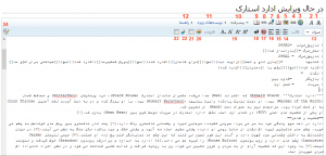 گزینه های موجود در نوار ابزار ویرایشگر با توجه به شماره گذاری های شکل روبرو از این قرار است.