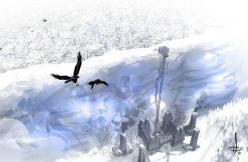 - پلکان بزرگ پرپیچ و خم از قلعه سیاه به بالای دیوار میرسد. این پلکان از چوب ساخته شده است و توسط تیرکها بزرگ یخ زده، به دیوار محکم شده است.