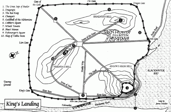 [[File:Kings_landing_ACOK_map.gif|thumb|600px|Copyright ©Round house, Drawn by James Sinclair]]