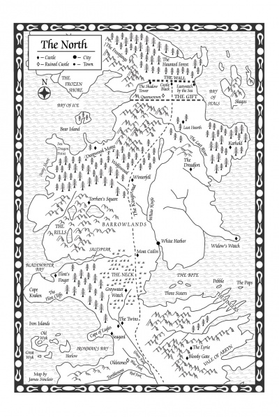 نقشه شمال در یورش شمشیرها (A Storm of Swords) شامل تمام اطلاعات جغرافیایی داده شده از جنوب تا نک (the Neck) است.که توسط جیمی سینکلر گردآوری شده است.